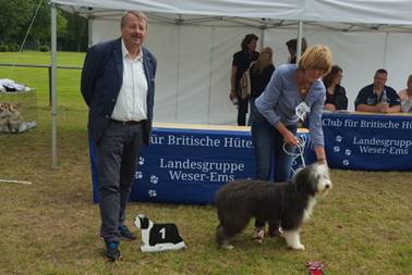Frau Karen McDevitt aus Nordirland (Collies, lang- u. kurzhaar, Welsh Corgi Pembroke, Welsh Corgi Cardigan) Frau Regina Blessing (Bearded Collies und Border Collies) und Herr Rolf Blessing (Shelties, OES und Körungen). Mit unserer Meldezahl von über 140 Hunden waren wir zufrieden. Für Frau Ulrike Thölken, unsere kommissarische Ausstellungswartin, war es die erste, von ihr hauptverantwortlich organisierte Schau. Bedanken möchten wir uns bei den Landesgruppenmitgliedern und bei allen anderen fleißigen Helfern, die stets bereit sind, unsere Ausstellung mit viel Einsatz zu unterstützen. Ohne deren Hilfe ist die Durchführung einer Ausstellung nicht möglich. Danke! Wir alle zusammen sind ein tolles Team !
